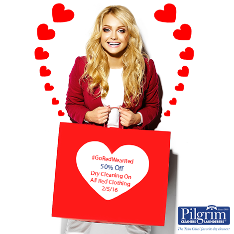 Tomorrow Only (Friday, February 5th, 2016) Take 50% off dry cleaning on all red clothing items brought into one of our 25 convenient Pilgrim Dry Cleaners locations. Just mention this promotion to receive the discount.