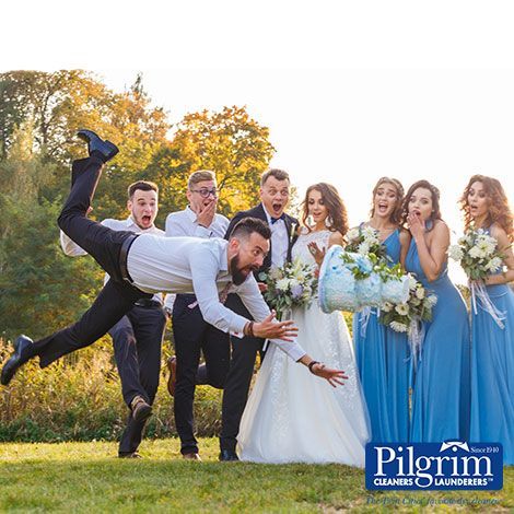 If you haven’t already, RSVP promptly and only bring a guest or kids if they are included on the invite. If you’re not in the wedding party, follow the dress code on the invite. If you’re in doubt, it is better to dress formally than to underdress at a wedding. Don’t dress in a manner that takes away attention from the maid of honor. Garments should be taken out of storage ahead of time to be cleaned and to ensure that they still fit. Over the years your body and the styles may change. Pilgrim Dry Cleaners has professional tailors for alterations. Make sure alterations are completed at least 4-6 weeks in advance, so your outfit is ready in time. Pilgrim Dry Cleaners specializes in quick turnaround times for those of you who forget to plan ahead. We have same day cleaning service and most alterations can be done within a week or so. The day of the wedding, be on your best behavior, take lots of photos and have a great time!